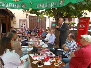Neue Wege geht die SPD mit ihren Kandidatinnen und Kandidaten, um mit den Wählerinnen und Wählern zur Kommunalwahl 2009 ins Gespräch zu kommen: Alle Ortsteile hat sie mit Rädern besucht unter dem Motto „Wir strampeln uns für Sie ab“. Dabei führte sie ein „offenes Ohr“ bei sich, in das - als Info-Stand aufgebaut - jeder der wollte, den Sozialdemokraten einen kommunalpolitischen Wunsch oder auch ein Ärgernis „ins Ohr flüstern“ konnte. Dies geschieht schriftlich, so dass nichts vergessen werden kann. Die künftigen SPD-Fraktionen im Gemeinderat Bad Mergentheim und im Kreistag werden bei ihrer politischen Tätigkeit die Schreiben der Bürger berücksichtigen. So wird Bürgernähe praktiziert und in die Tat umgesetzt...